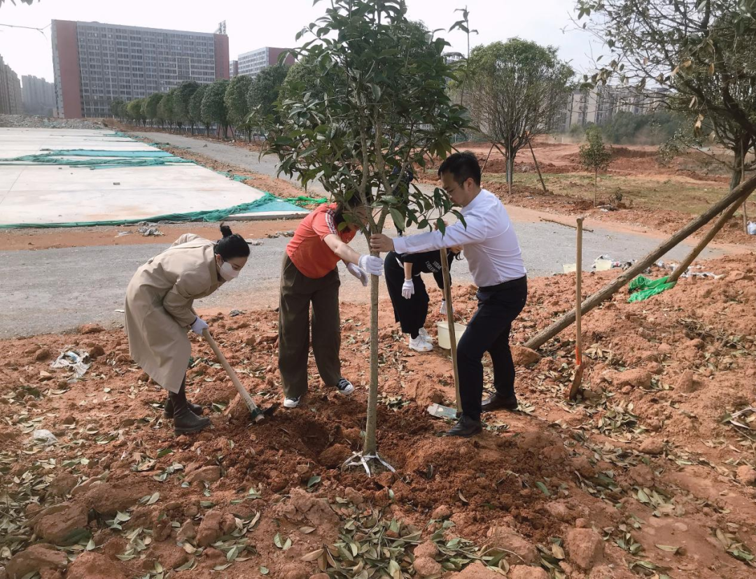 植樹現(xiàn)場,同志們五人一組,紛紛拿起鋤頭、水桶等工具,如火如荼地投入到植樹活動中,經(jīng)過幾個小時的共同努力,一批新樹苗在高云生態(tài)公園安家落戶,迎風(fēng)挺立。通過此次植樹活動,黨員們不僅深刻體會到了團結(jié)協(xié)作的力量,還進一步強化了綠化家園、美化環(huán)境的意識,充分發(fā)揮了黨員先鋒模范帶頭作用。